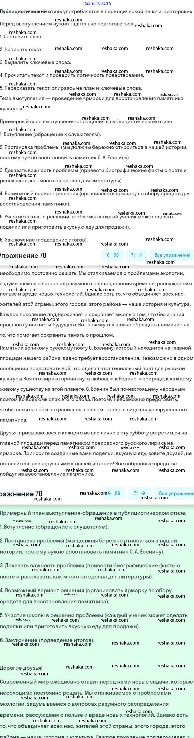 Решака - онлайн ответы Русский язык Баранов, Ладыженская за 7 класс Учебник ФГОС 2015 - 70