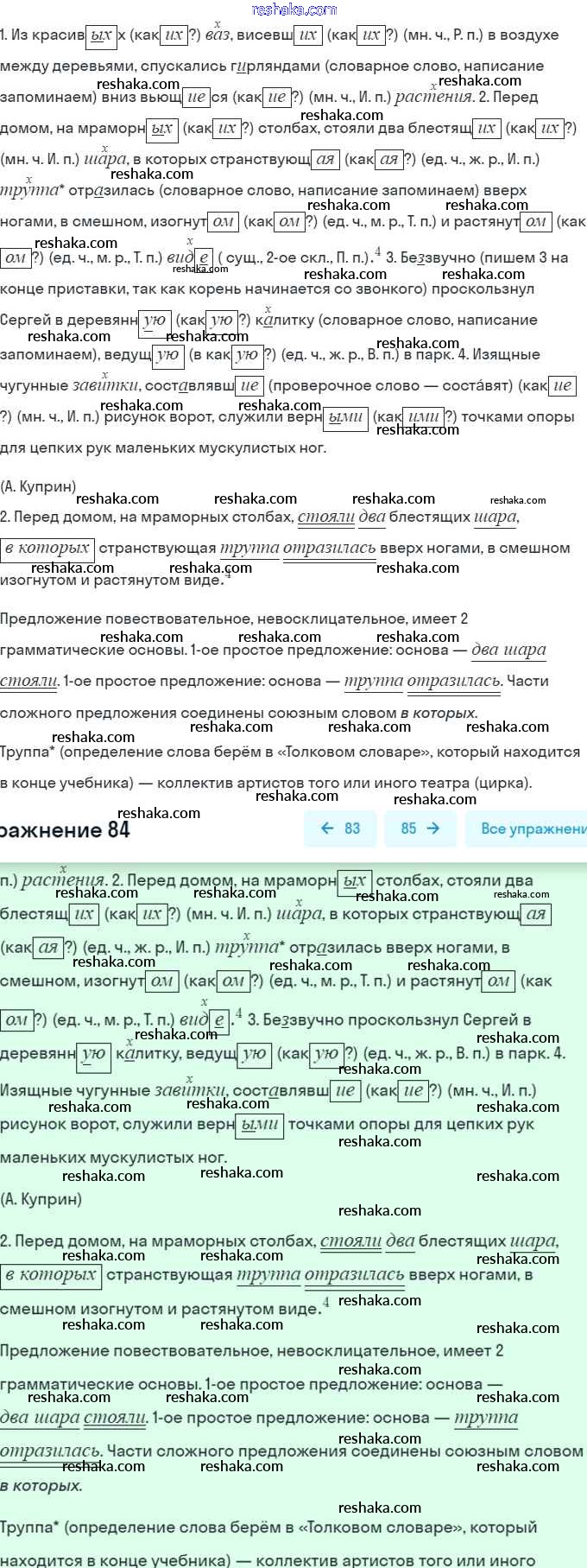 Решака - онлайн ответы Русский язык Баранов, Ладыженская за 7 класс Учебник ФГОС 2015 - 84