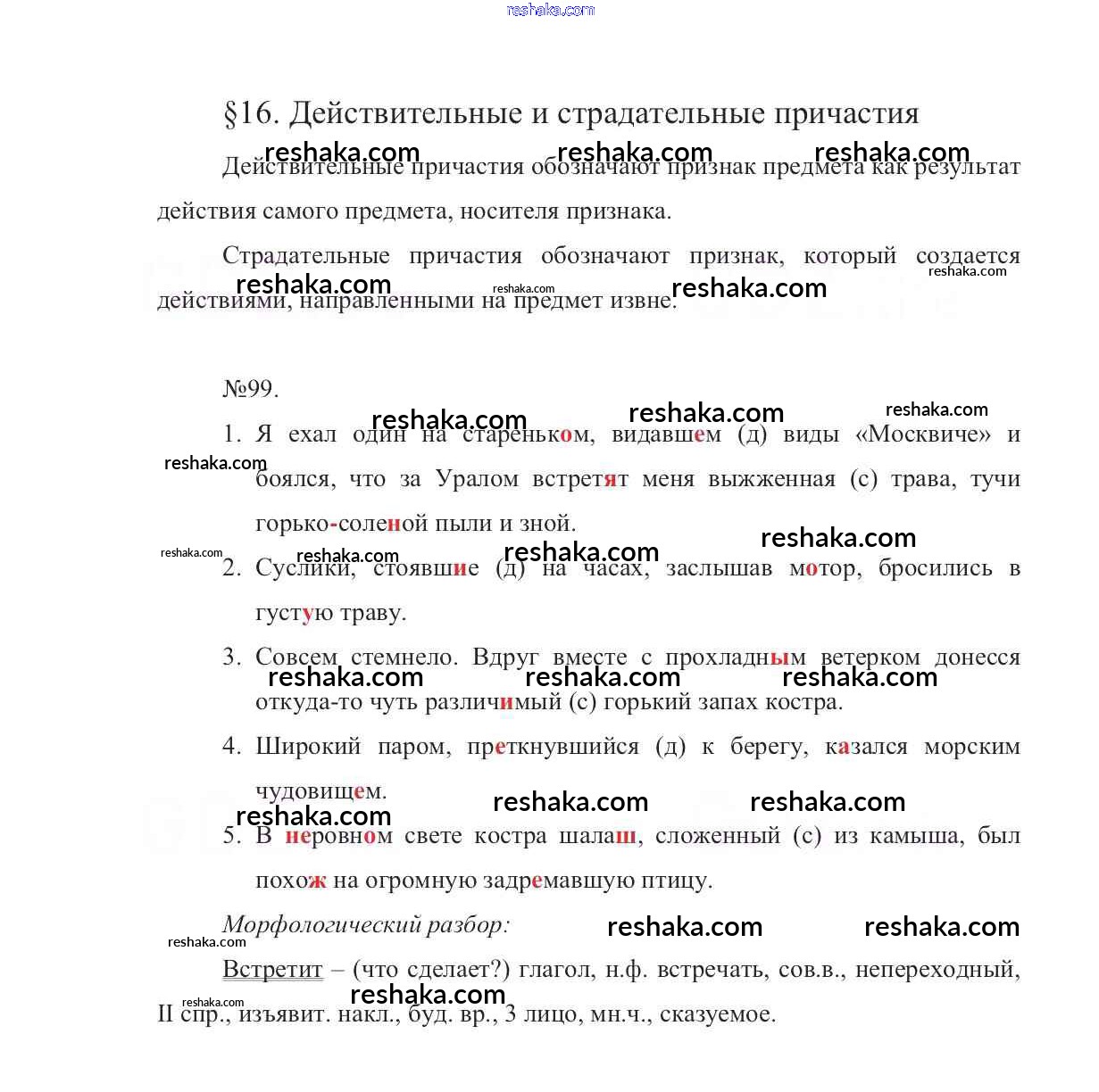 Решака - онлайн ответы Русский язык Баранов, Ладыженская за 7 класс Учебник ФГОС 2015 - 99