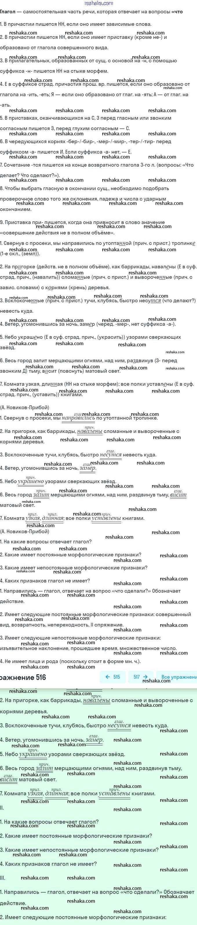 Решака - онлайн ответы Русский язык Баранов, Ладыженская за 7 класс Учебник ФГОС 2015 - 516