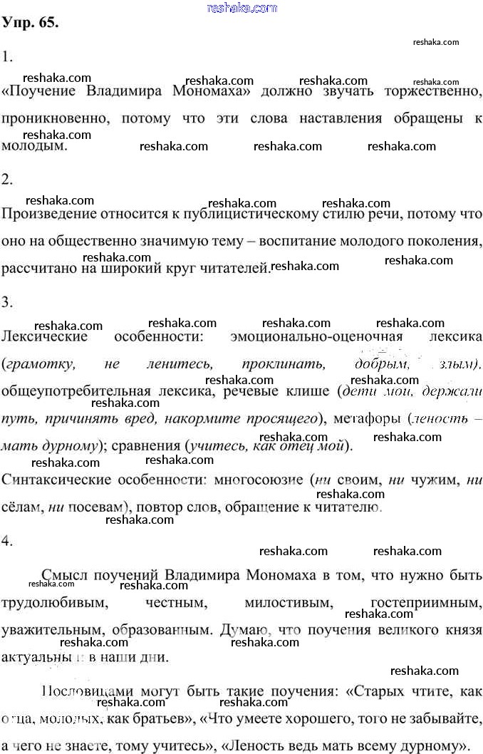 Решака - онлайн ответы Русский язык Быстрова, Кибирева за 7 класс Учебник ФГОС 2019 - 65