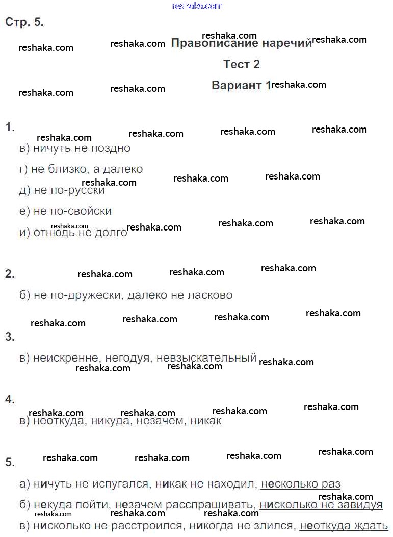 Решака - онлайн ответы Русский язык Книгина за 7 класс Тесты ФГОС 2012 - 5