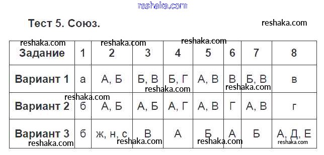 Решака - онлайн ответы Русский язык Малюшкин, Иконницкая за 7 класс Тестовые задания ФГОС 2020 - Тест №5. Союз