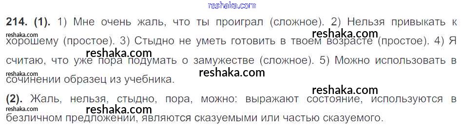 Решака - онлайн ответы Русский язык Разумовская, Львова за 7 класс Учебник ФГОС 2014 - 214