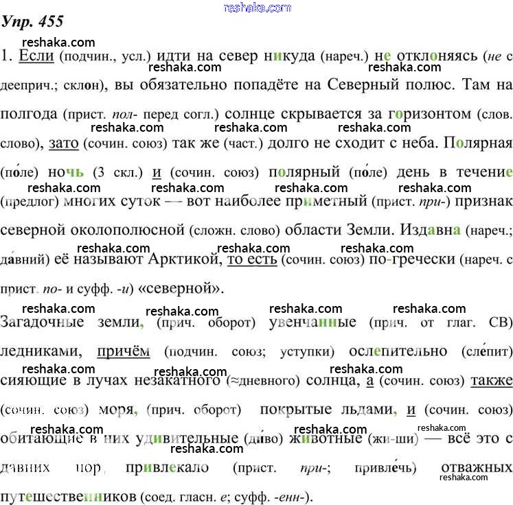 Решака - онлайн ответы Русский язык Разумовская, Львова за 7 класс Учебник ФГОС 2014 - 455