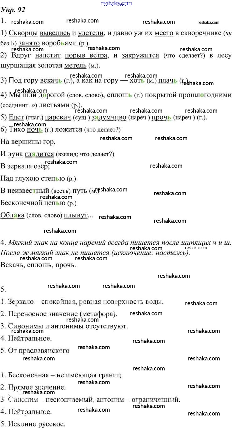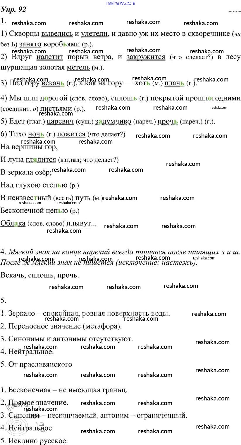 Решака - онлайн ответы Русский язык Разумовская, Львова за 7 класс Учебник ФГОС 2014 - 92