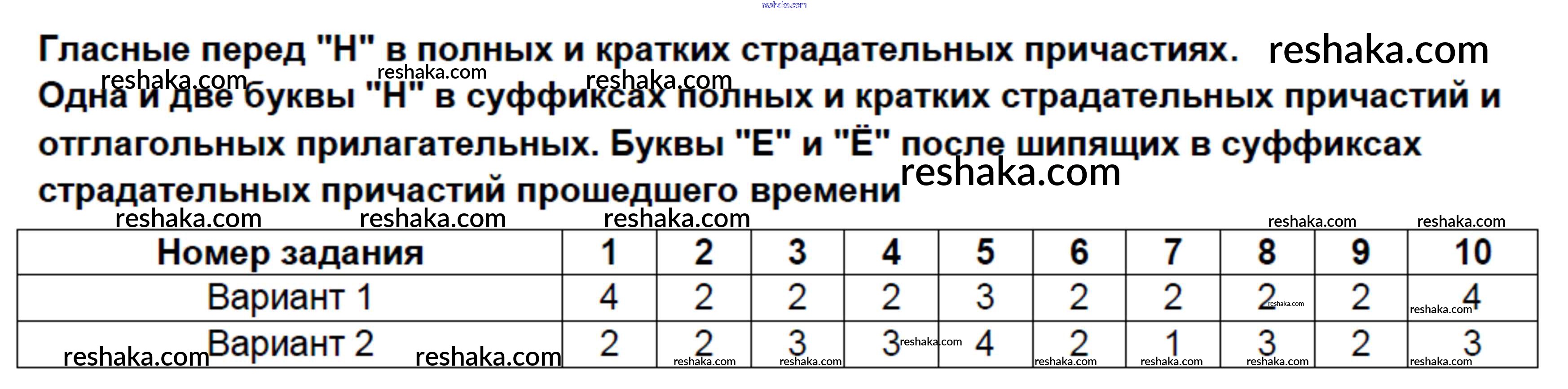 Решака - онлайн ответы Русский язык Селезнева за 7 класс Тесты ФГОС 2014 - Тест № 10. Гласные перед Н в полных и кратких страдательных причастиях