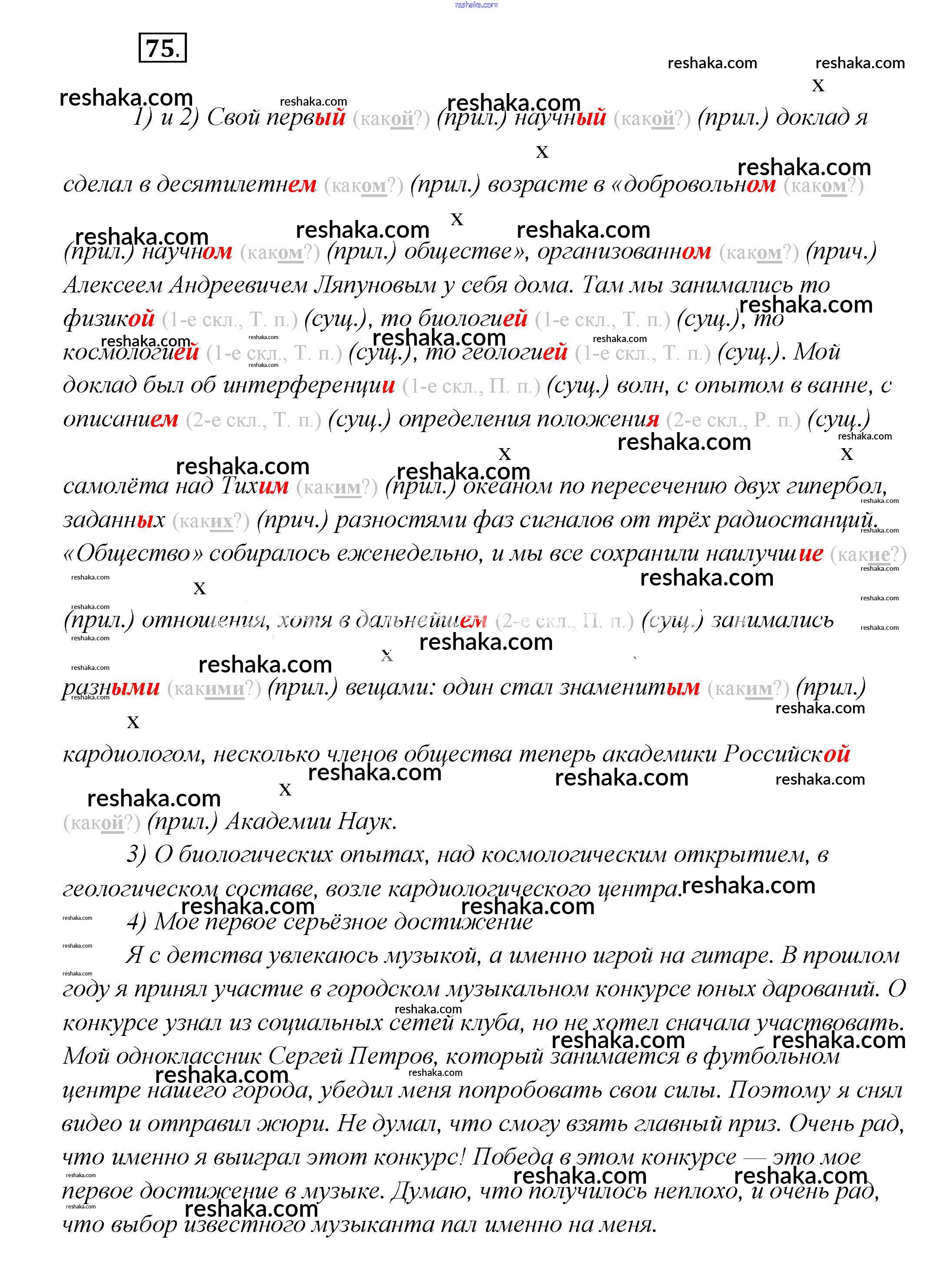 Решака - онлайн ответы Русский язык Шмелёв, Флоренская за 7 класс Учебник ФГОС 2016 - 75