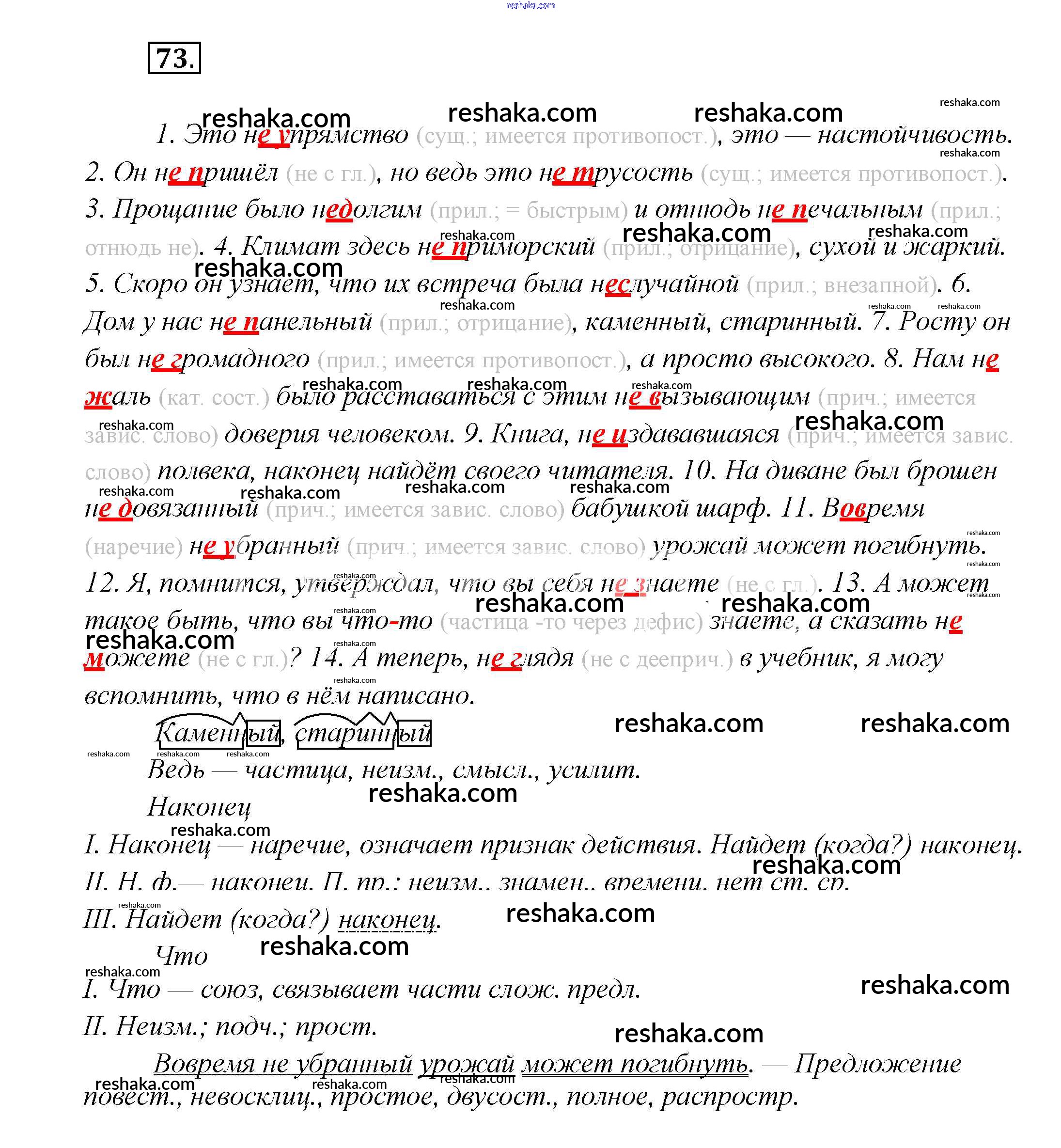 Решака - онлайн ответы Русский язык Шмелёв, Флоренская за 7 класс Учебник ФГОС 2016 - 73