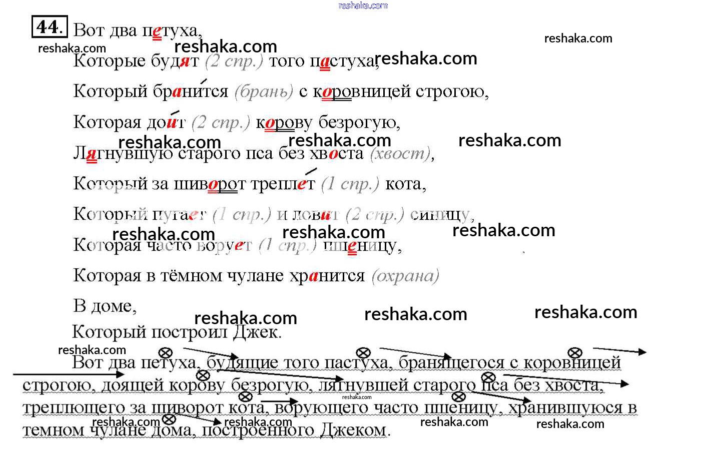 Решака - онлайн ответы Русский язык Янченко, Латфуллина за 7 класс Рабочая тетрадь 2017 - 44
