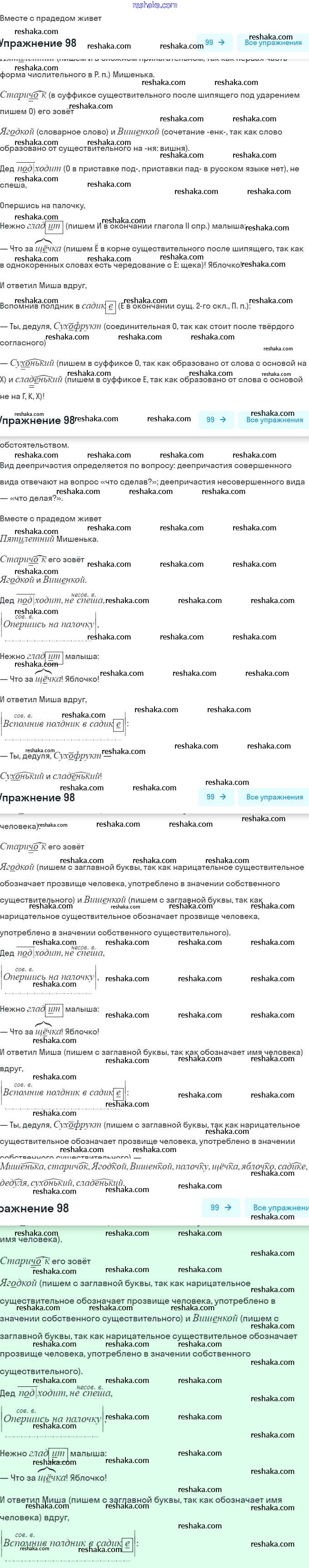 Решака - онлайн ответы Русский язык Янченко, Латфуллина за 7 класс Рабочая тетрадь 2017 - 98