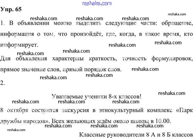 Решака - онлайн ответы Русский язык Быстрова, Кибирева за 8 класс Учебник ФГОС 2019 - 65