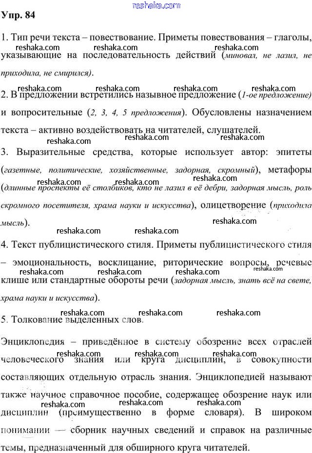 Решака - онлайн ответы Русский язык Быстрова, Кибирева за 8 класс Учебник ФГОС 2019 - 84