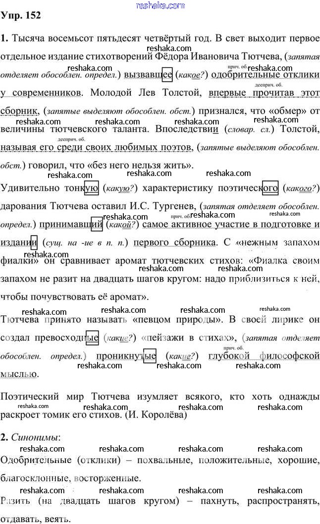 Решака - онлайн ответы Русский язык Быстрова, Кибирева за 8 класс Учебник ФГОС 2019 - 152