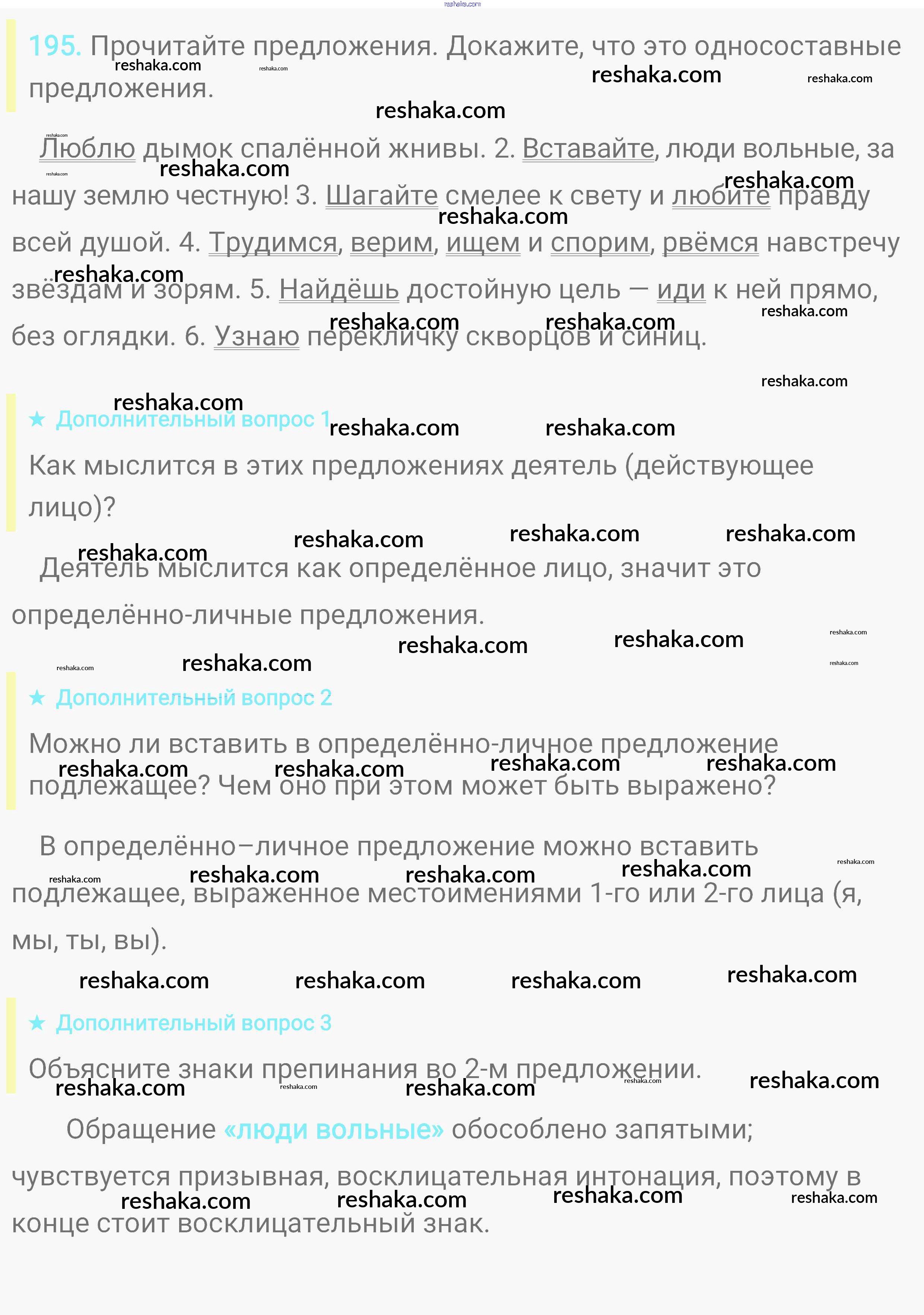 Решака - онлайн ответы Русский язык Пичугов, Еремеева за 8 класс Практика ФГОС 2016 - 195