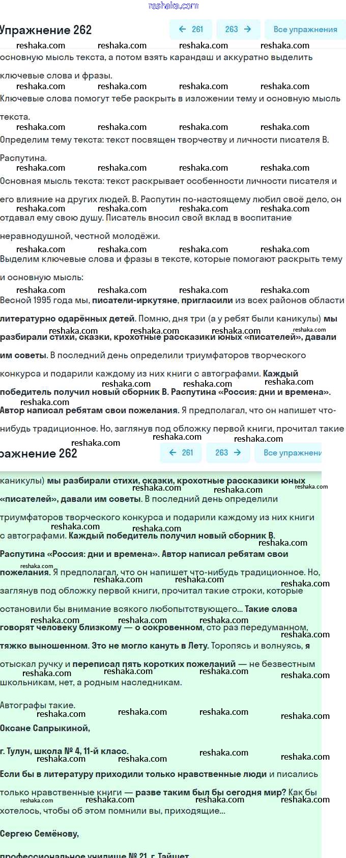 Решака - онлайн ответы Русский язык Пичугов, Еремеева за 8 класс Практика ФГОС 2016 - 262