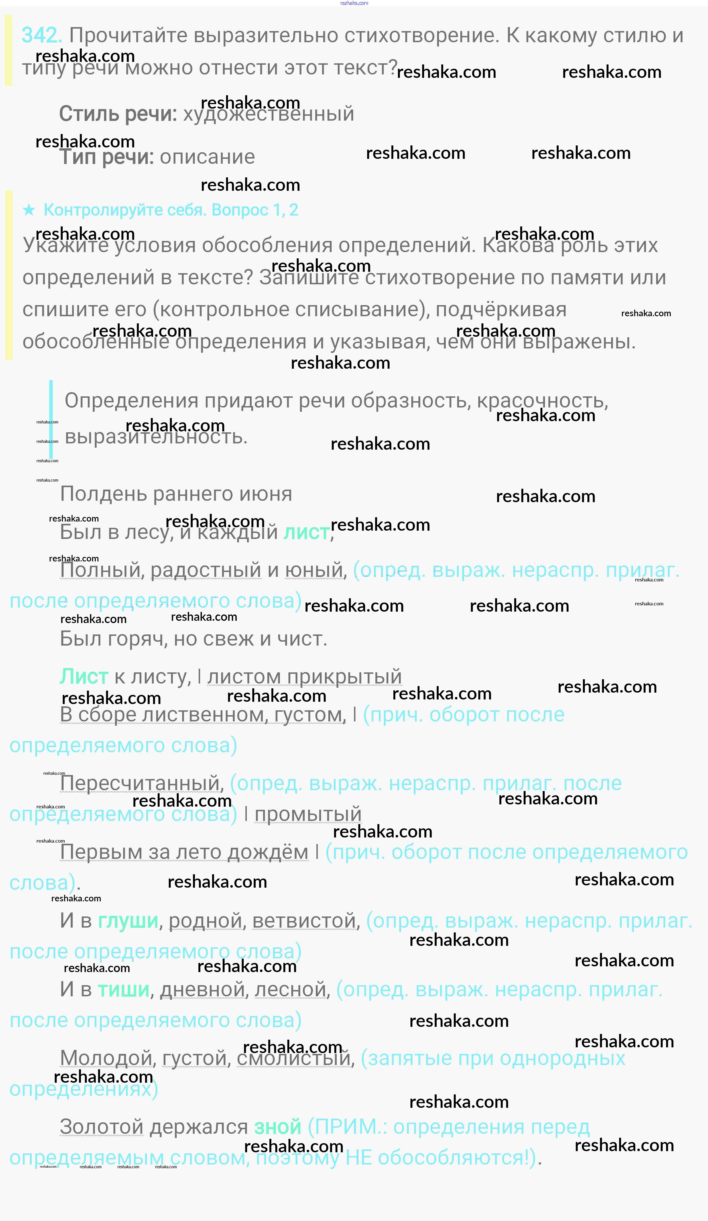 Решака - онлайн ответы Русский язык Пичугов, Еремеева за 8 класс Практика ФГОС 2016 - 342