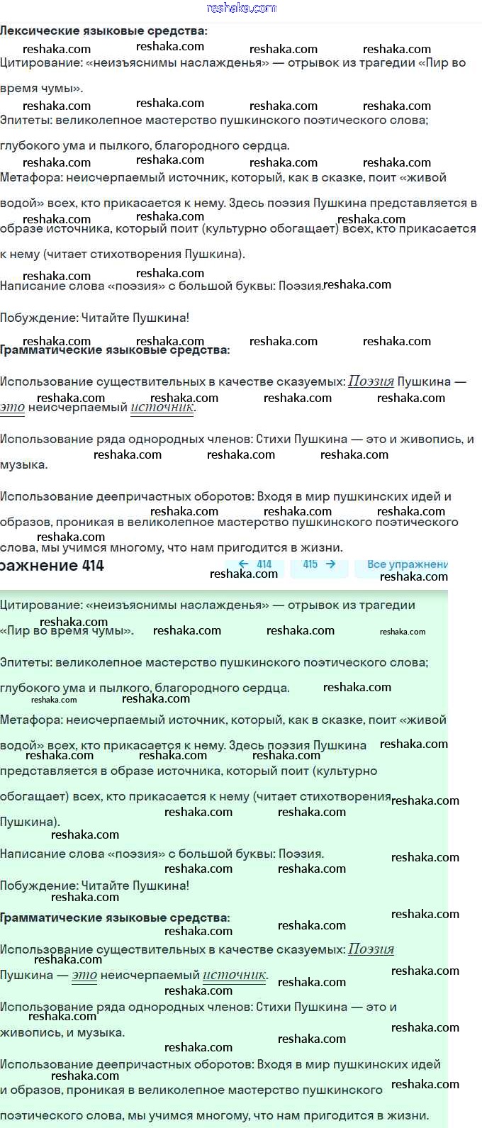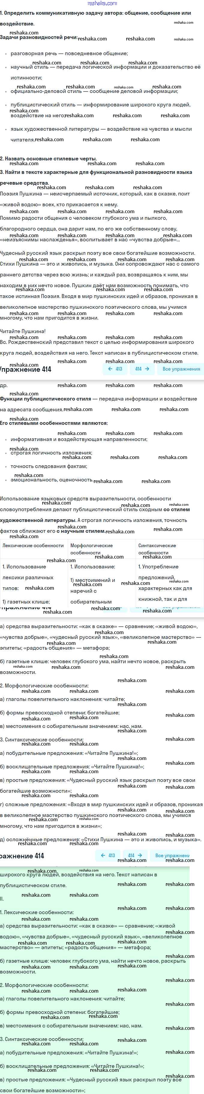 Решака - онлайн ответы Русский язык Пичугов, Еремеева за 8 класс Практика ФГОС 2016 - 414