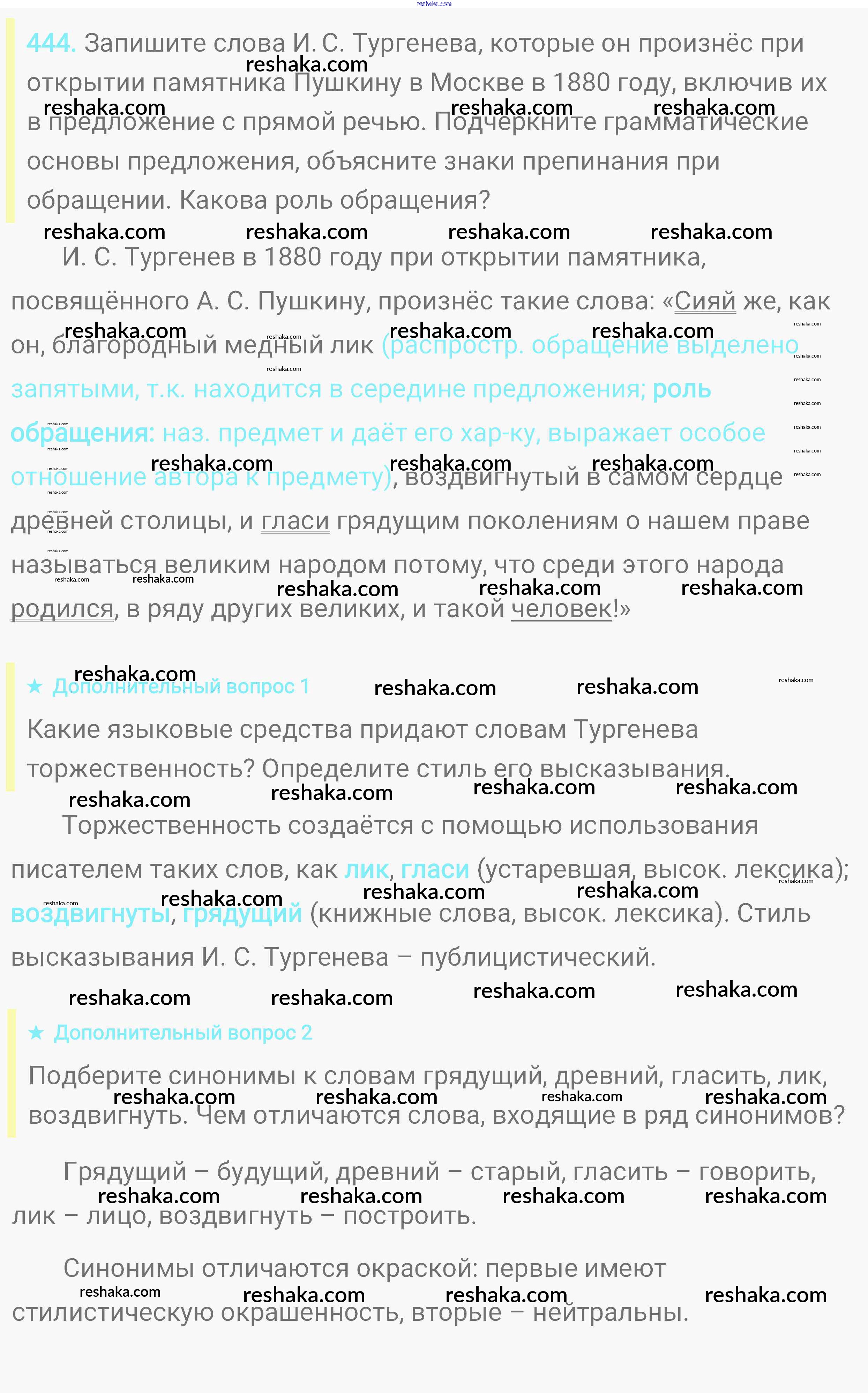 Решака - онлайн ответы Русский язык Пичугов, Еремеева за 8 класс Практика ФГОС 2016 - 444