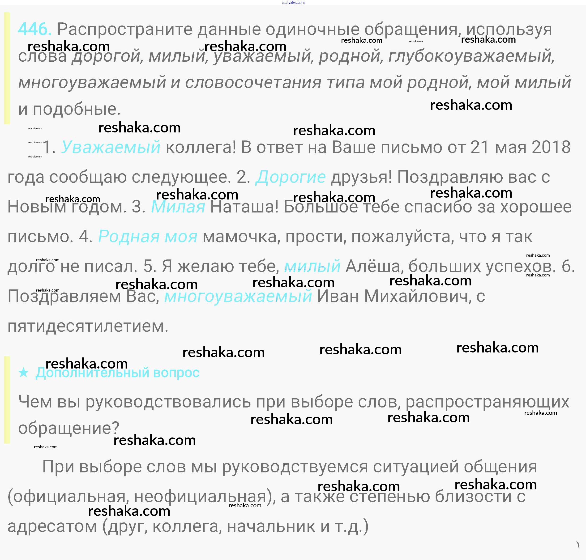 Решака - онлайн ответы Русский язык Пичугов, Еремеева за 8 класс Практика ФГОС 2016 - 446