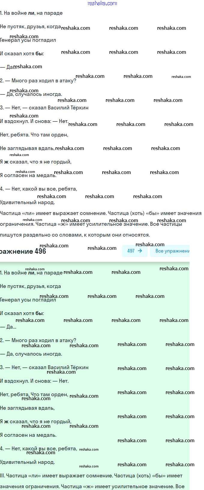 Решака - онлайн ответы Русский язык Пичугов, Еремеева за 8 класс Практика ФГОС 2016 - 496