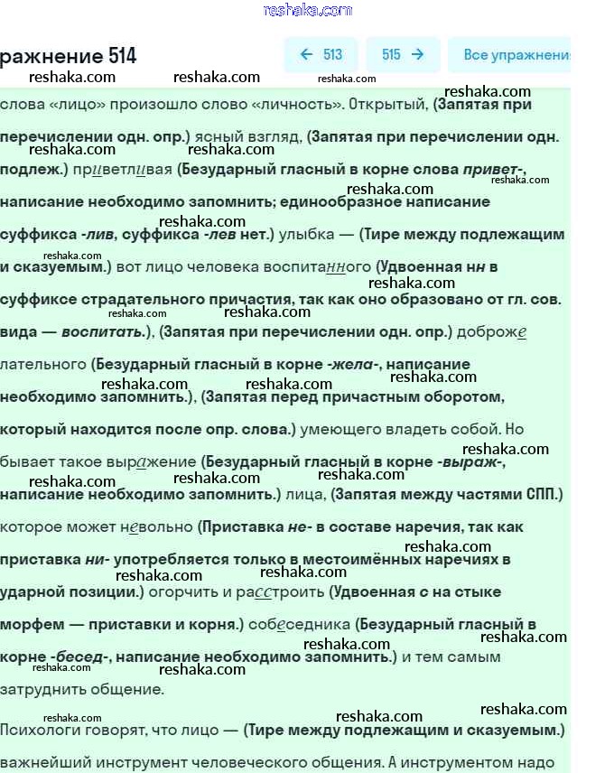 Решака - онлайн ответы Русский язык Пичугов, Еремеева за 8 класс Практика ФГОС 2016 - 514