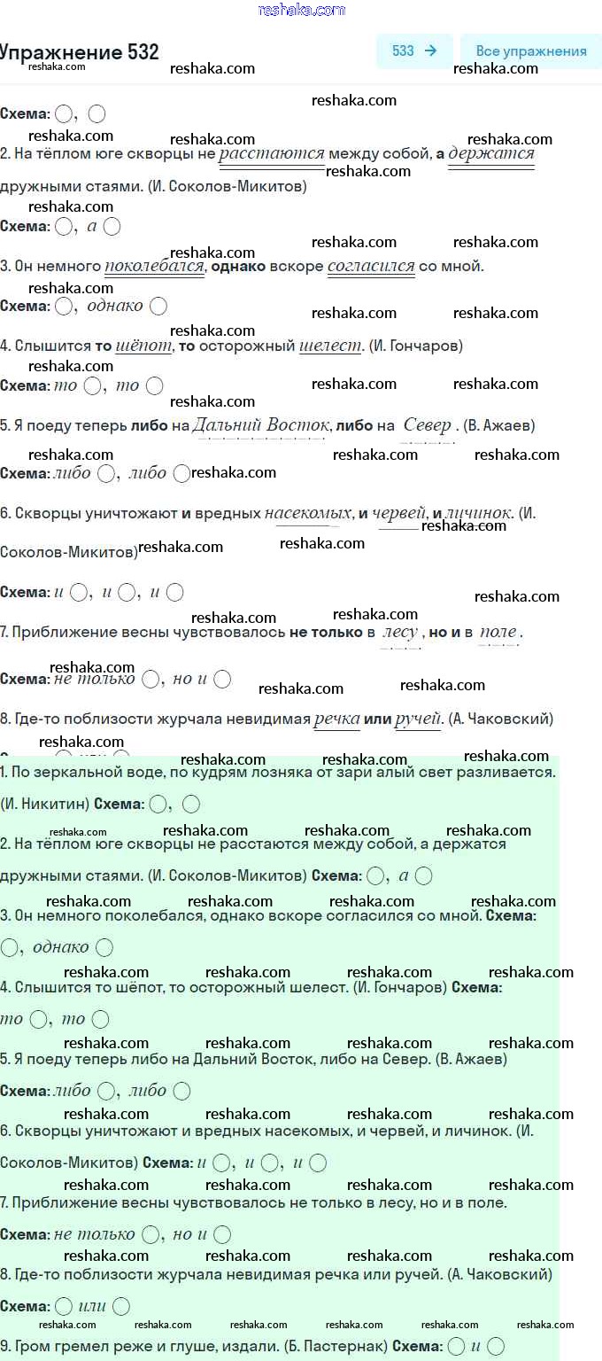 Решака - онлайн ответы Русский язык Пичугов, Еремеева за 8 класс Практика ФГОС 2016 - 532