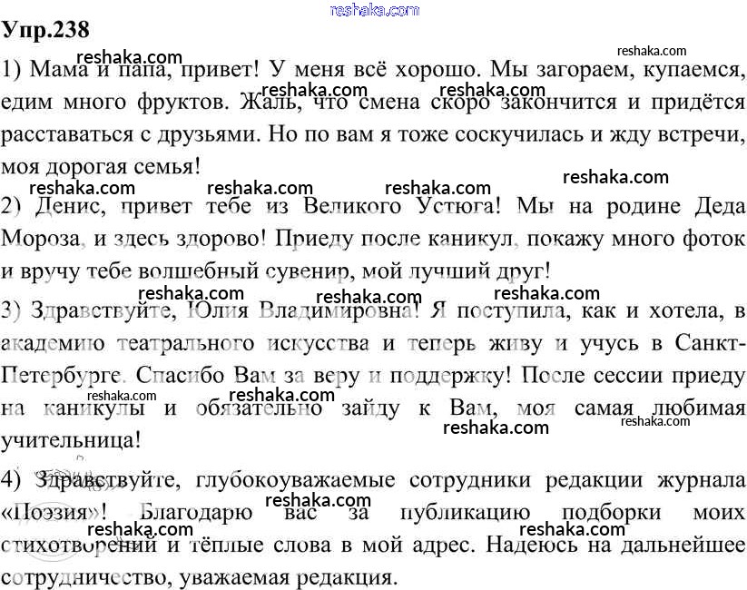 Решака - онлайн ответы Русский язык Разумовская, Львова за 8 класс Учебник ФГОС 2013 - 238
