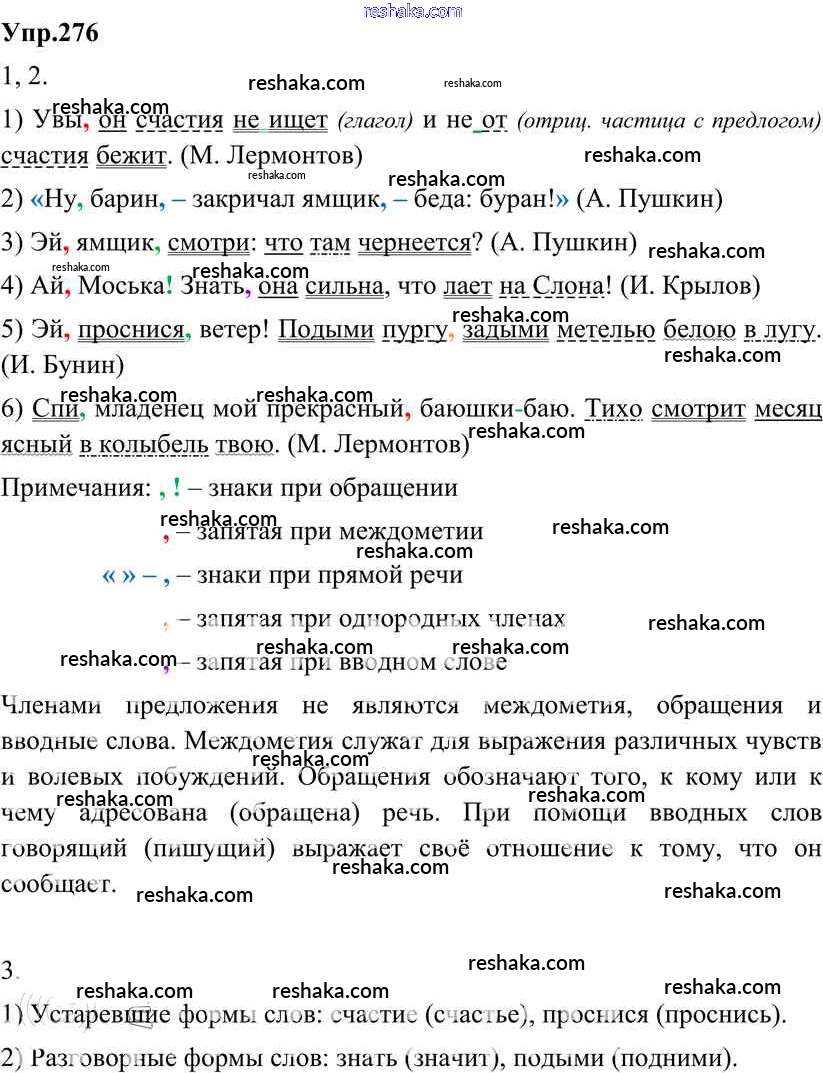 Решака - онлайн ответы Русский язык Разумовская, Львова за 8 класс Учебник ФГОС 2013 - 276