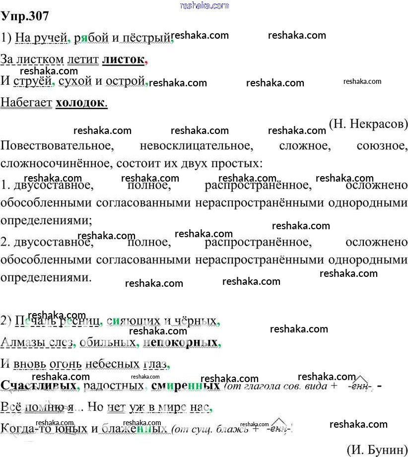 Решака - онлайн ответы Русский язык Разумовская, Львова за 8 класс Учебник ФГОС 2013 - 307