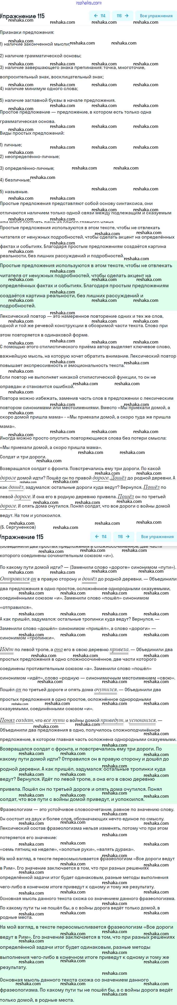 Решака - онлайн ответы Русский язык Рыбченкова, Александрова за 8 класс Учебник ФГОС 2015 - 115