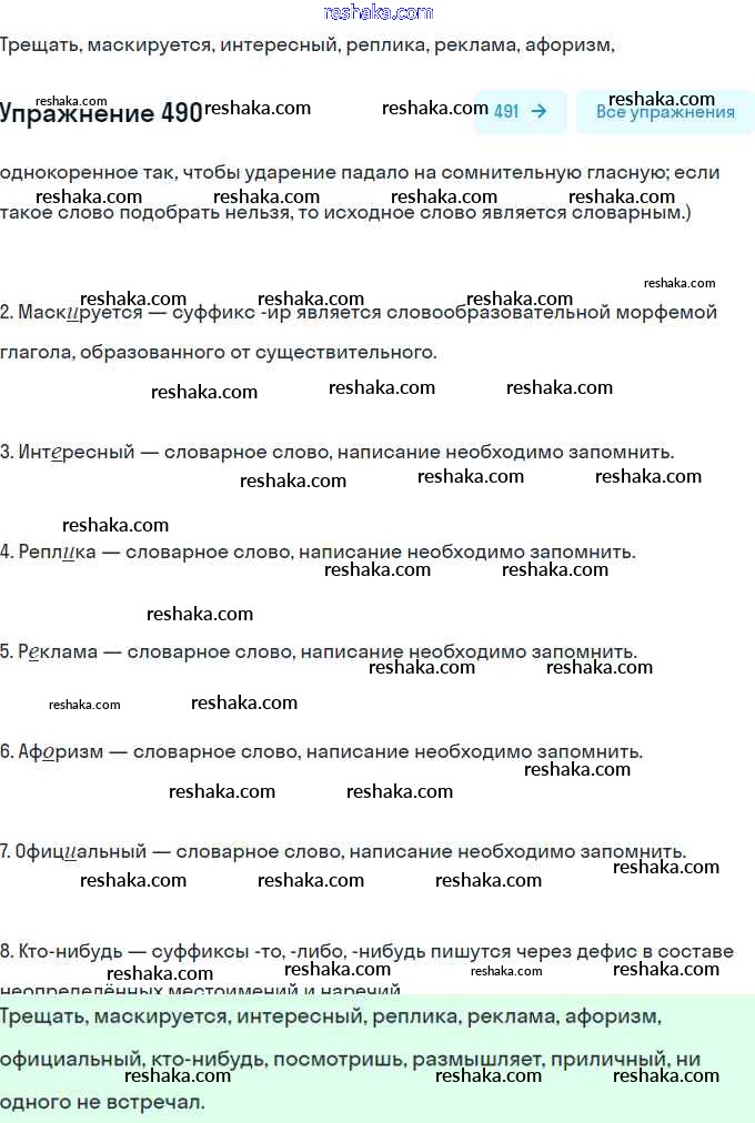 Решака - онлайн ответы Русский язык Рыбченкова, Александрова за 8 класс Учебник ФГОС 2015 - 490