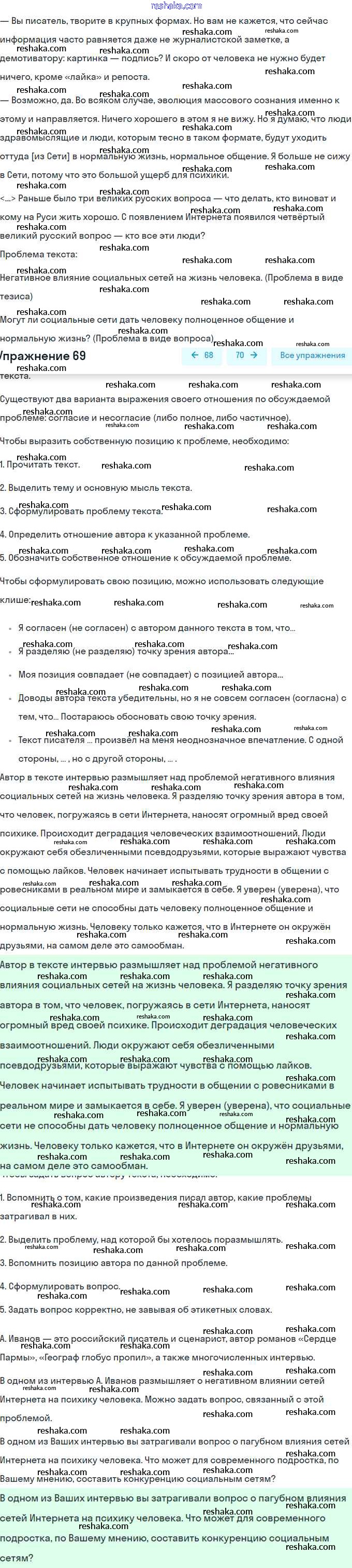 Представляем вам сборники по Русскому языку, с готовыми ответами к Учебнику Рыбченкова школьной программы для учеников восьмой класса. Это не просто гдз с ответом, а с подсказками, как верно решить Упражнения 69. Проверяй домашку с умом и получай высший балл!
