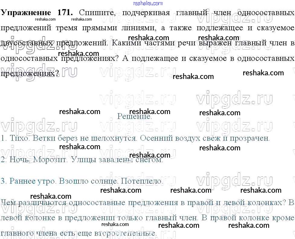 Решака - онлайн ответы Русский язык Тростенцова, Ладыженская за 8 класс Учебник ФГОС 2014 - 171