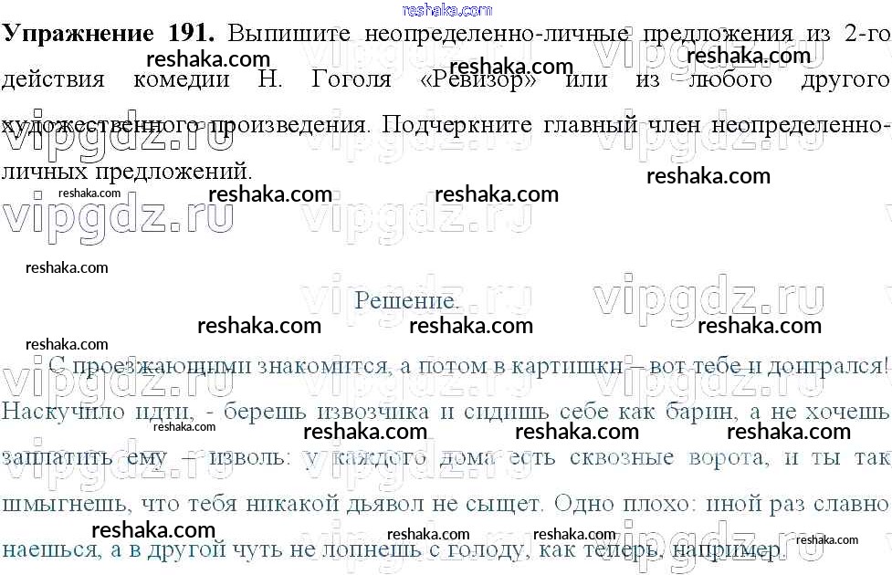 Решака - онлайн ответы Русский язык Тростенцова, Ладыженская за 8 класс Учебник ФГОС 2014 - 191