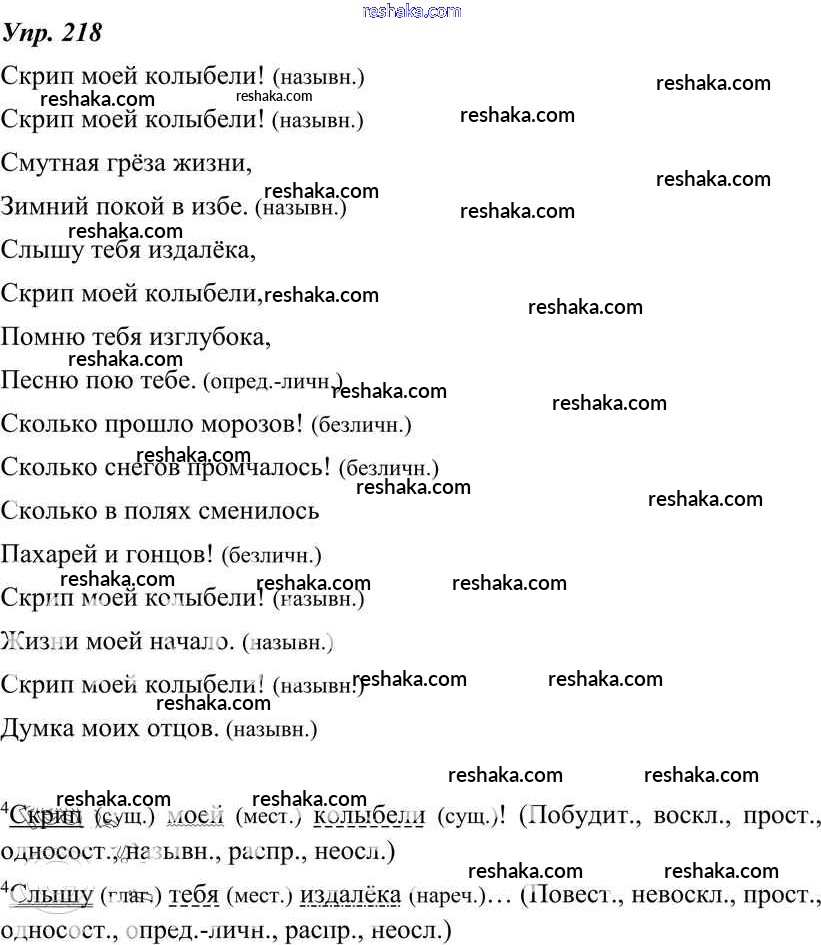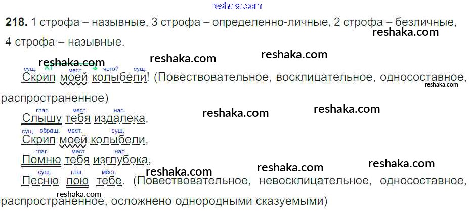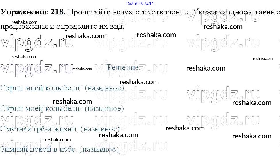 Решака - онлайн ответы Русский язык Тростенцова, Ладыженская за 8 класс Учебник ФГОС 2014 - 218