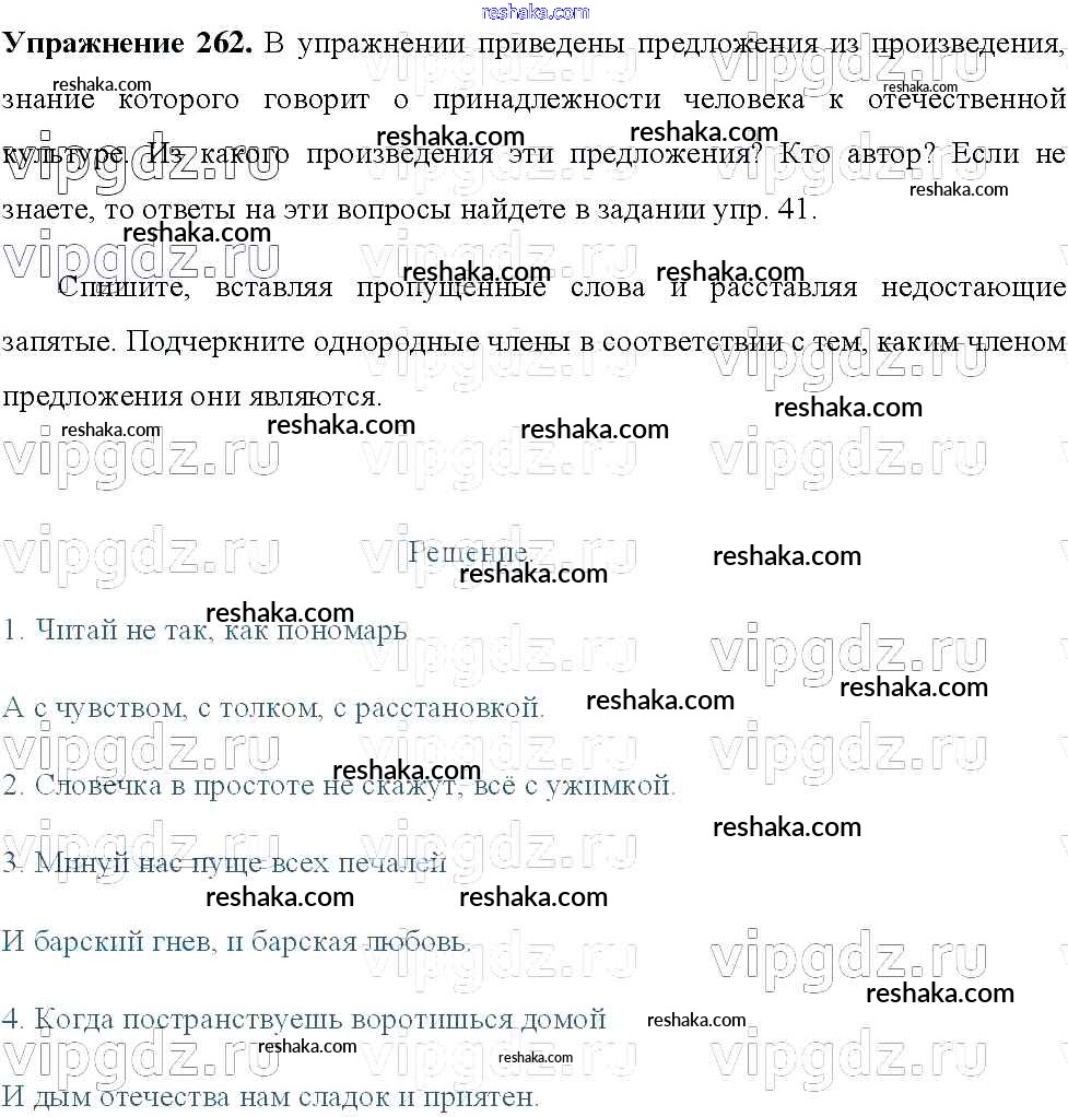 Решака - онлайн ответы Русский язык Тростенцова, Ладыженская за 8 класс Учебник ФГОС 2014 - 262