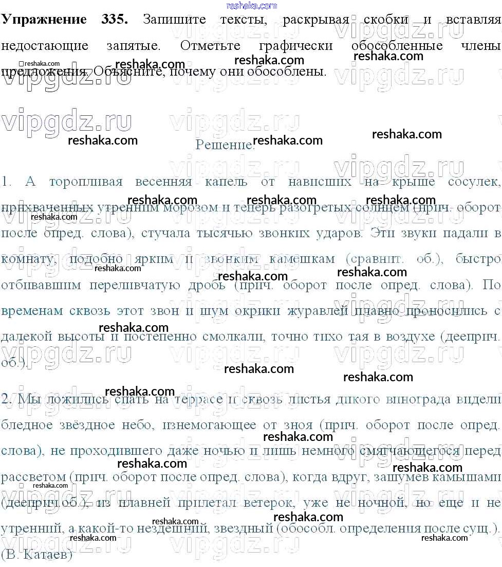 Решака - онлайн ответы Русский язык Тростенцова, Ладыженская за 8 класс Учебник ФГОС 2014 - 335
