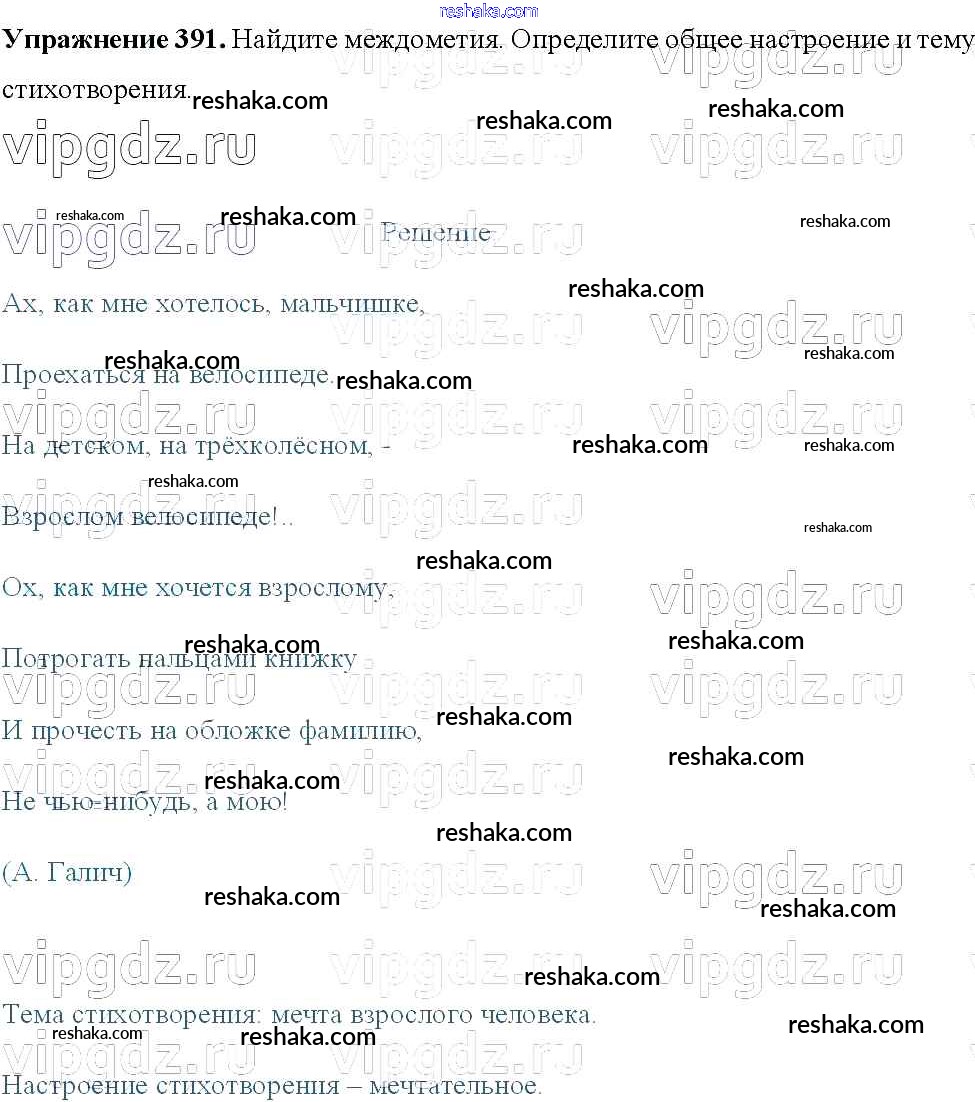 Решака - онлайн ответы Русский язык Тростенцова, Ладыженская за 8 класс Учебник ФГОС 2014 - 391