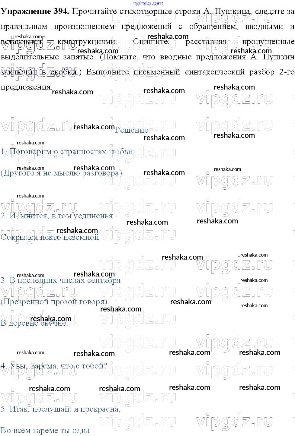 Решака - онлайн ответы Русский язык Тростенцова, Ладыженская за 8 класс Учебник ФГОС 2014 - 394