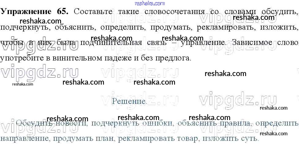 Решака - онлайн ответы Русский язык Тростенцова, Ладыженская за 8 класс Учебник ФГОС 2014 - 65