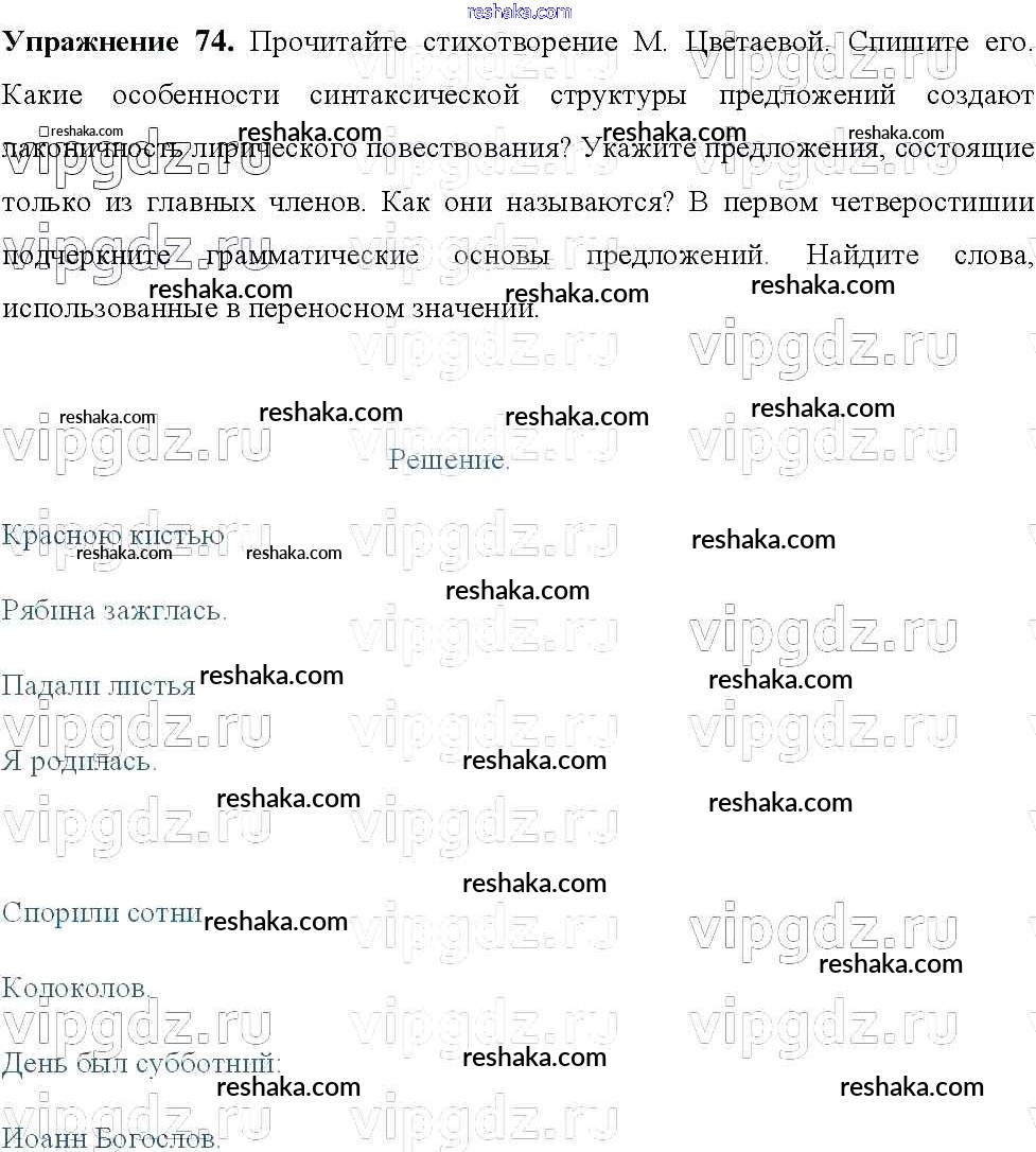 Решака - онлайн ответы Русский язык Тростенцова, Ладыженская за 8 класс Учебник ФГОС 2014 - 74
