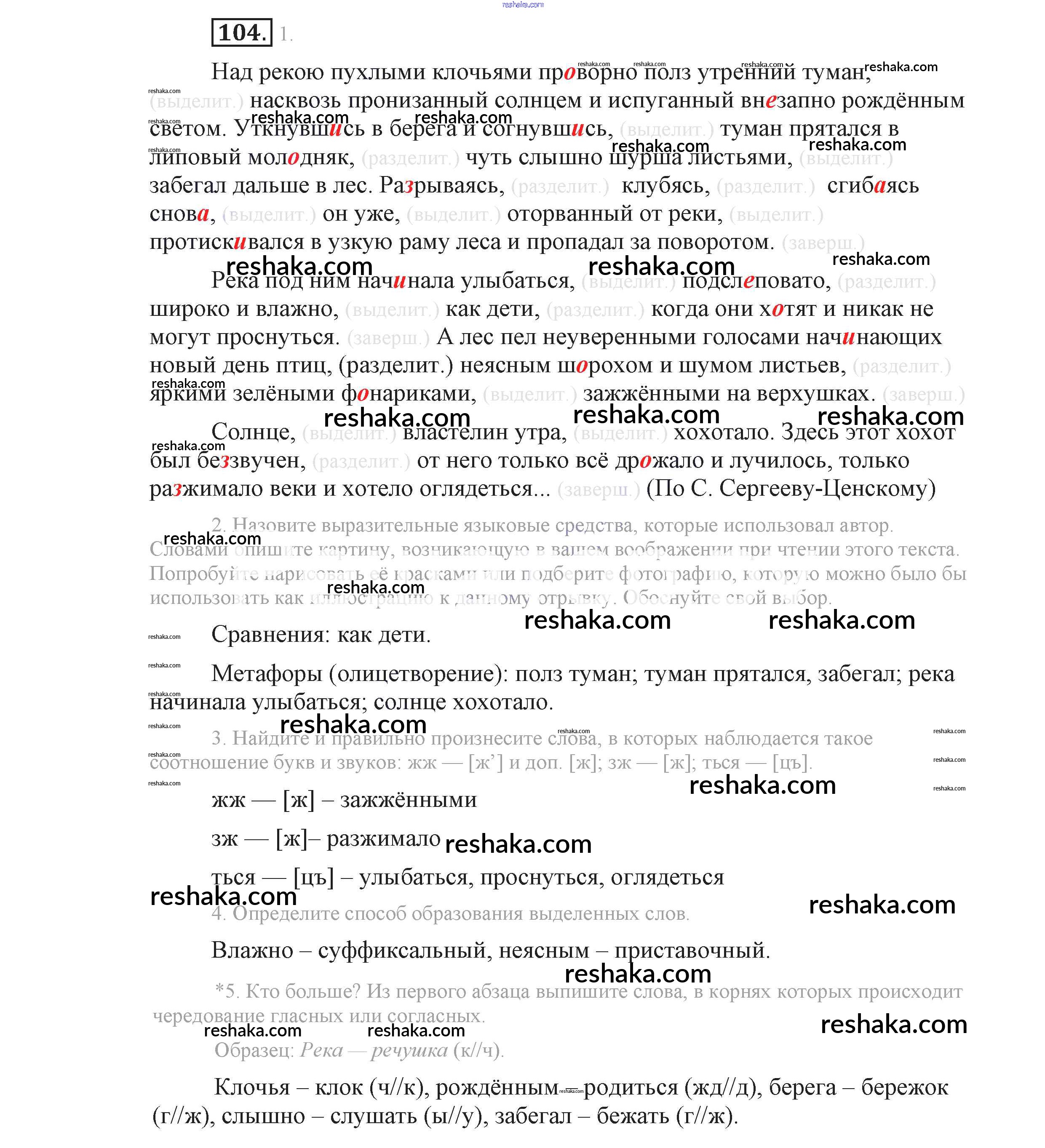 Решака - онлайн ответы Русский язык Львова, Львов за 9 класс Учебник ФГОС 2016 - 104