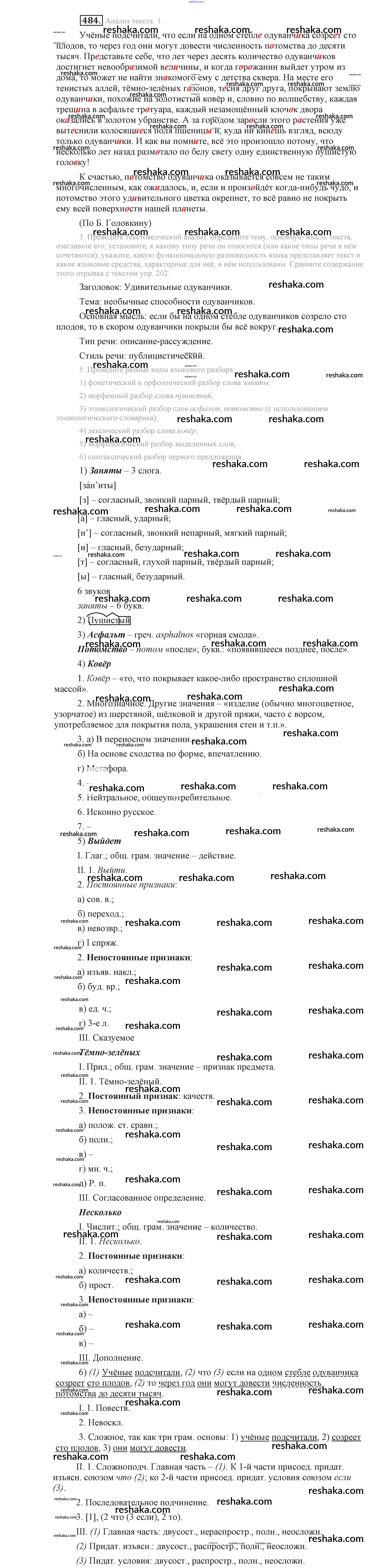 Решака - онлайн ответы Русский язык Львова, Львов за 9 класс Учебник ФГОС 2016 - 484