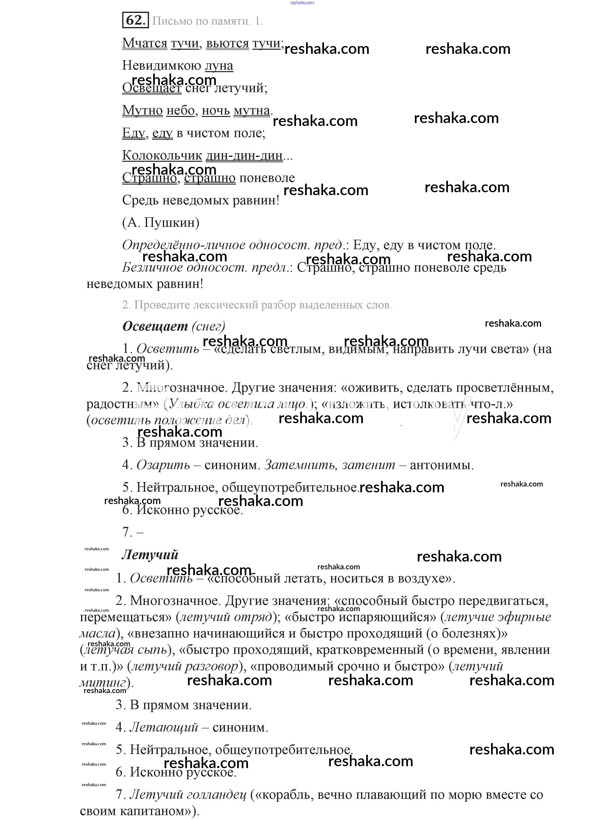 Решака - онлайн ответы Русский язык Львова, Львов за 9 класс Учебник ФГОС 2016 - 62