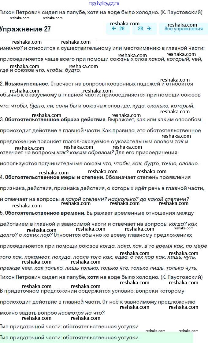 контрольная работа / сложноподчинённое предложение / вариант 1 / 27