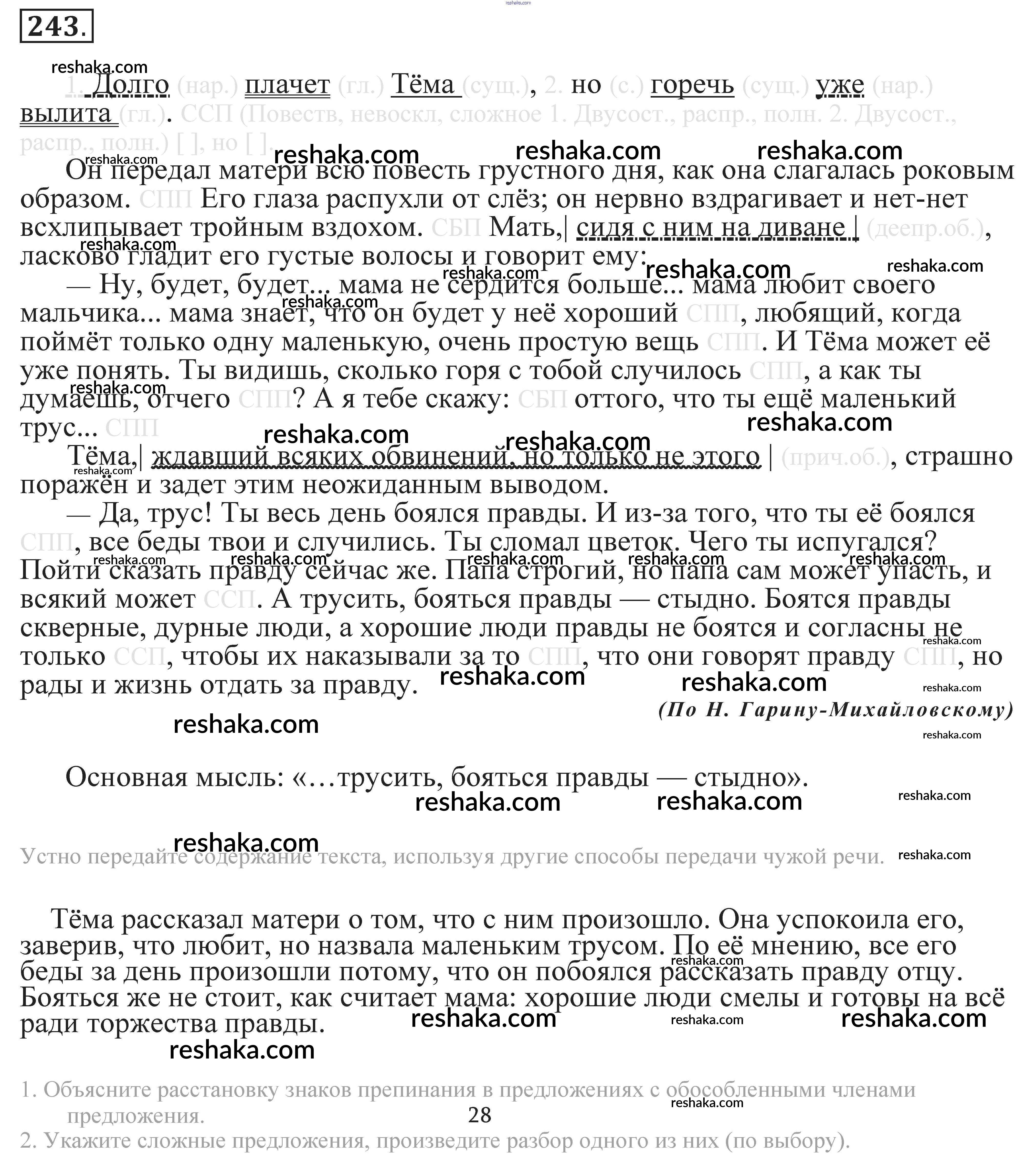 Решака - онлайн ответы Русский язык Пичугов, Еремеева за 9 класс Практика 2022 - 243