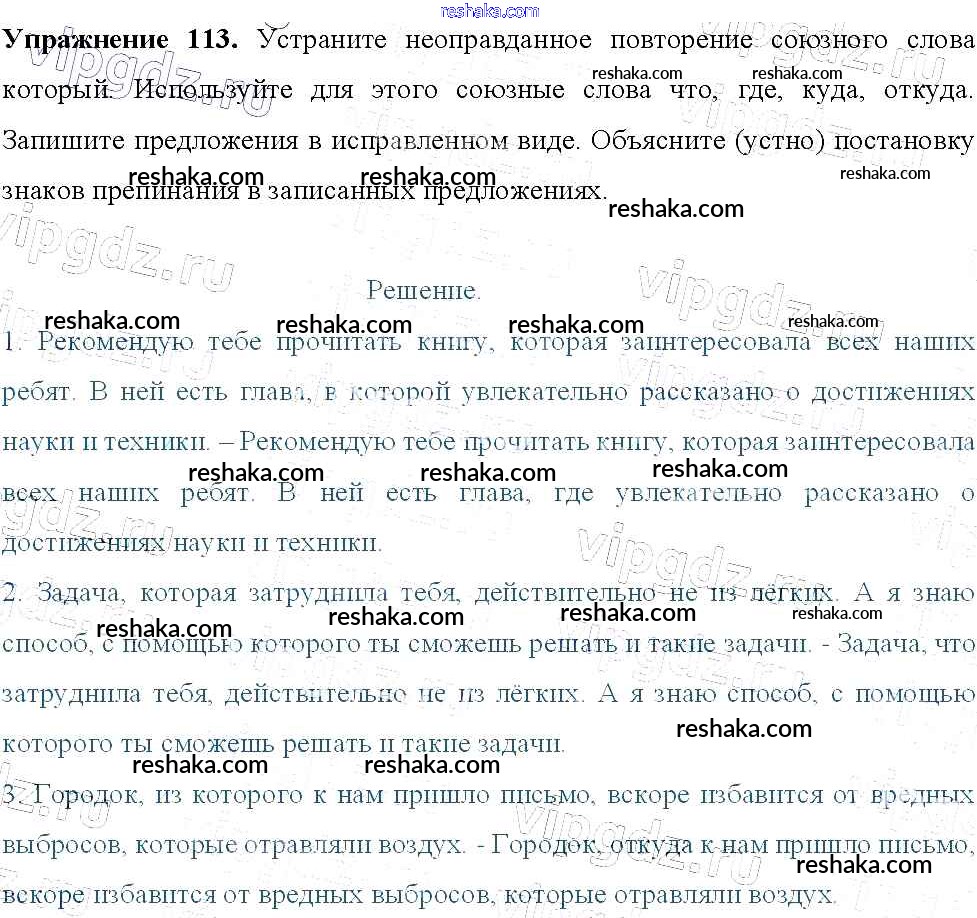 Решака - онлайн ответы Русский язык Тростенцова, Ладыженская за 9 класс Учебник ФГОС 2014 - 113