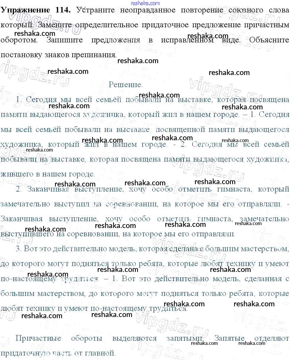 Решака - онлайн ответы Русский язык Тростенцова, Ладыженская за 9 класс Учебник ФГОС 2014 - 114