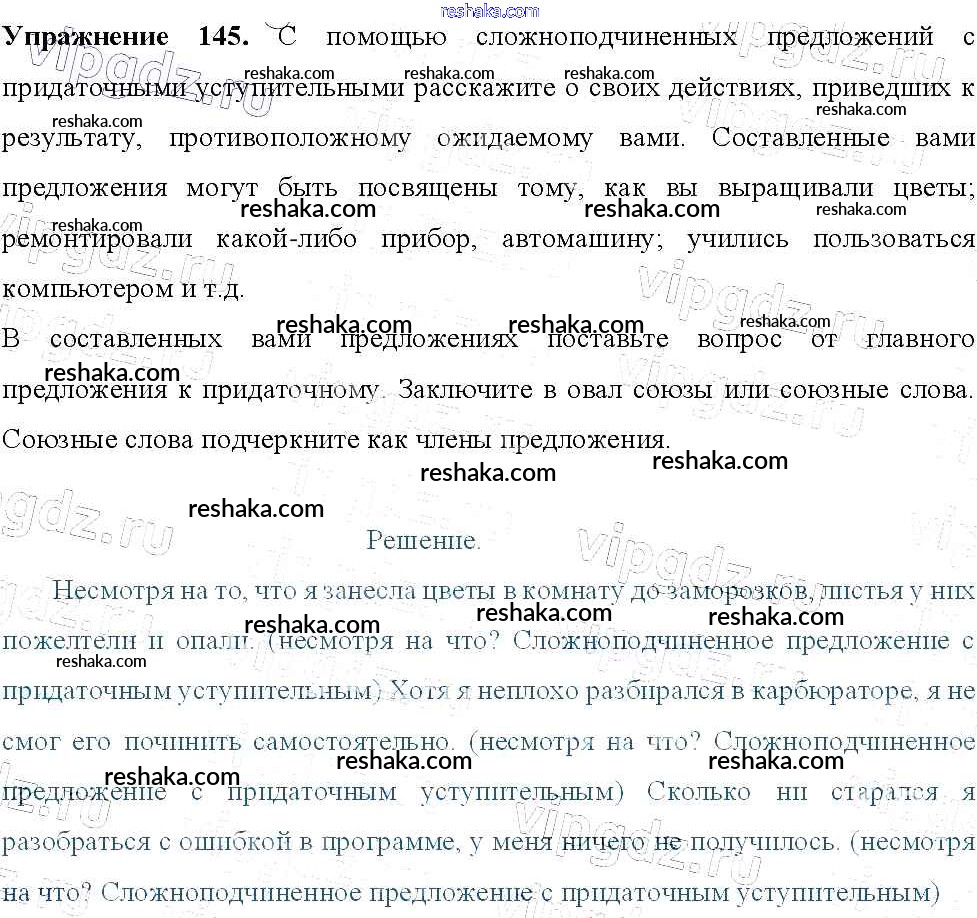 Решака - онлайн ответы Русский язык Тростенцова, Ладыженская за 9 класс Учебник ФГОС 2014 - 145